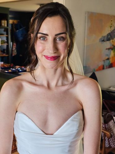 Thanks so much for adjusting the eye color palette and my hairstyle to be a high updo for the wedding! Everything stayed perfectly despite sweat, wind, and drizzle! Great communication and I thought your portal was easy to use and well-organized.Loved working with Rebecka and would highly recommend!