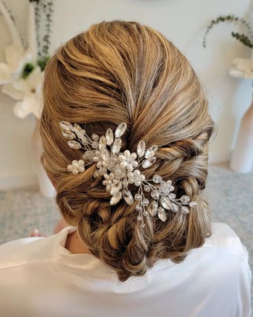 Rebecka was absolutely amazing and incredibly professional when helping with wedding hair. I first met her when I went for my initial trial, and she immediately made me feel comfortable. She looked at the images I saved on Pinterest and knew just what would work for my hair. On the day of the wedding she did my hair, my bridesmaids and my mother and mother in law. It was so important to me that everyone felt comfortable especially my mother and mother in law as they never get their hair done. Rebecka was a dream, everyone looked amazing and was happy and comfortable with their hair. My hair was beautiful! She was able to seamlessly work in a floral piece and I couldn’t have been more happy. I got so many comments on my beautiful hair. Thank you Rebecka for making me feel so special on our big day!